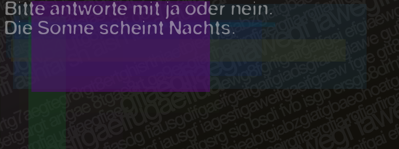 Die Visuelle Bestätigung hilft dabei automatische Spambots und Scripte von den Diensten dieses Forums abzuhalten. Derartige Scripte sind normalerweise nicht in der Lage den untenstehenden Code zu erkennen. Bitte geben Sie also in das untenstehende Feld die Buchstaben und Zahlen ein, die Sie in dem Bild erkennen können oder beantworten Sie die angezeigte Frage.