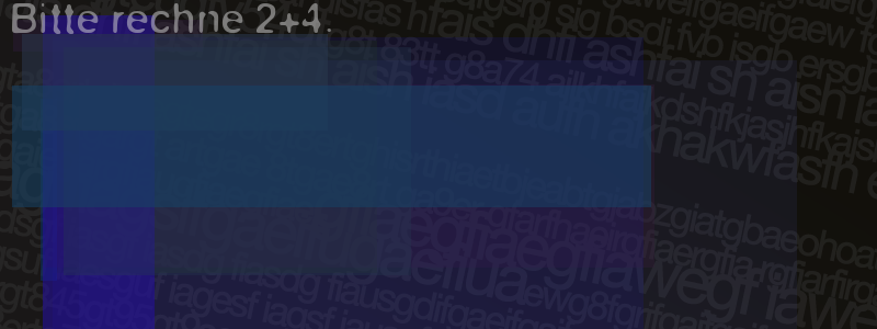 Die Visuelle Bestätigung hilft dabei automatische Spambots und Scripte von den Diensten dieses Forums abzuhalten. Derartige Scripte sind normalerweise nicht in der Lage den untenstehenden Code zu erkennen. Bitte geben Sie also in das untenstehende Feld die Buchstaben und Zahlen ein, die Sie in dem Bild erkennen können oder beantworten Sie die angezeigte Frage.