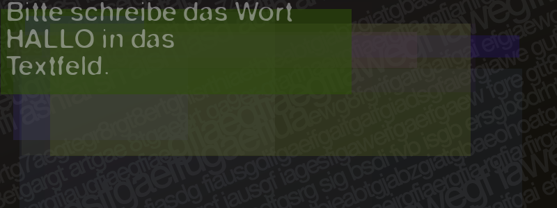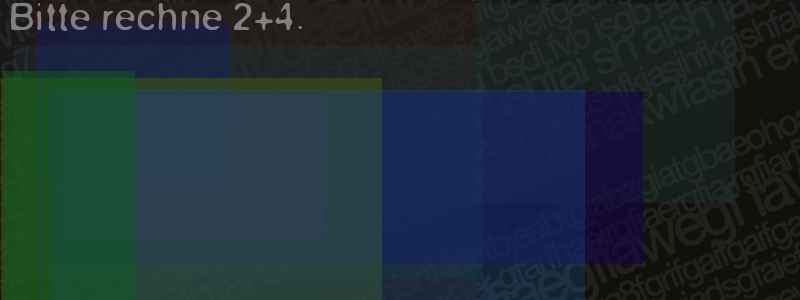 Die Visuelle Bestätigung hilft dabei automatische Spambots und Scripte von den Diensten dieses Forums abzuhalten. Derartige Scripte sind normalerweise nicht in der Lage den untenstehenden Code zu erkennen. Bitte geben Sie also in das untenstehende Feld die Buchstaben und Zahlen ein, die Sie in dem Bild erkennen können oder beantworten Sie die angezeigte Frage.