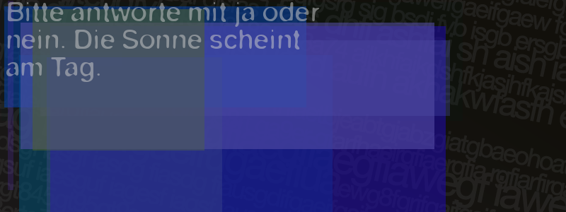 Die Visuelle Bestätigung hilft dabei automatische Spambots und Scripte von den Diensten dieses Forums abzuhalten. Derartige Scripte sind normalerweise nicht in der Lage den untenstehenden Code zu erkennen. Bitte geben Sie also in das untenstehende Feld die Buchstaben und Zahlen ein, die Sie in dem Bild erkennen können oder beantworten Sie die angezeigte Frage.