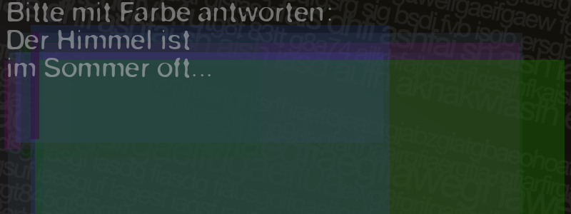 Die Visuelle Bestätigung hilft dabei automatische Spambots und Scripte von den Diensten dieses Forums abzuhalten. Derartige Scripte sind normalerweise nicht in der Lage den untenstehenden Code zu erkennen. Bitte geben Sie also in das untenstehende Feld die Buchstaben und Zahlen ein, die Sie in dem Bild erkennen können oder beantworten Sie die angezeigte Frage.