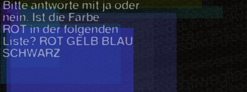 Die Visuelle Bestätigung hilft dabei automatische Spambots und Scripte von den Diensten dieses Forums abzuhalten. Derartige Scripte sind normalerweise nicht in der Lage den untenstehenden Code zu erkennen. Bitte geben Sie also in das untenstehende Feld die Buchstaben und Zahlen ein, die Sie in dem Bild erkennen können oder beantworten Sie die angezeigte Frage.