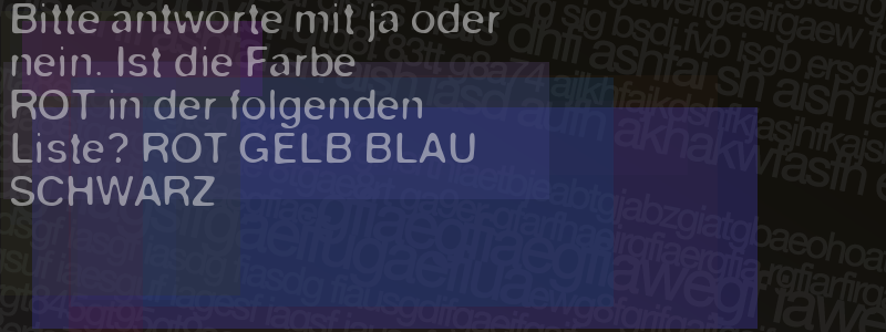 Die Visuelle Bestätigung hilft dabei automatische Spambots und Scripte von den Diensten dieses Forums abzuhalten. Derartige Scripte sind normalerweise nicht in der Lage den untenstehenden Code zu erkennen. Bitte geben Sie also in das untenstehende Feld die Buchstaben und Zahlen ein, die Sie in dem Bild erkennen können oder beantworten Sie die angezeigte Frage.