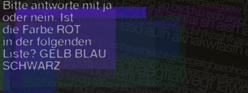 Die Visuelle Bestätigung hilft dabei automatische Spambots und Scripte von den Diensten dieses Forums abzuhalten. Derartige Scripte sind normalerweise nicht in der Lage den untenstehenden Code zu erkennen. Bitte geben Sie also in das untenstehende Feld die Buchstaben und Zahlen ein, die Sie in dem Bild erkennen können oder beantworten Sie die angezeigte Frage.