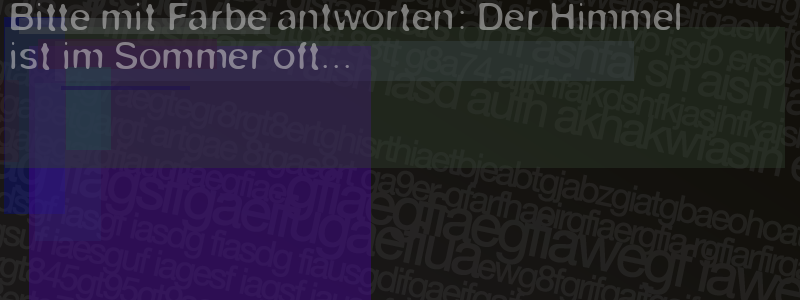Die Visuelle Bestätigung hilft dabei automatische Spambots und Scripte von den Diensten dieses Forums abzuhalten. Derartige Scripte sind normalerweise nicht in der Lage den untenstehenden Code zu erkennen. Bitte geben Sie also in das untenstehende Feld die Buchstaben und Zahlen ein, die Sie in dem Bild erkennen können oder beantworten Sie die angezeigte Frage.