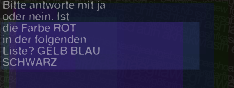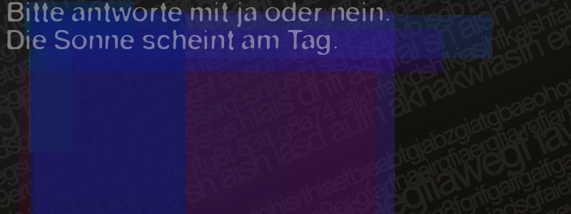 Die Visuelle Bestätigung hilft dabei automatische Spambots und Scripte von den Diensten dieses Forums abzuhalten. Derartige Scripte sind normalerweise nicht in der Lage den untenstehenden Code zu erkennen. Bitte geben Sie also in das untenstehende Feld die Buchstaben und Zahlen ein, die Sie in dem Bild erkennen können oder beantworten Sie die angezeigte Frage.