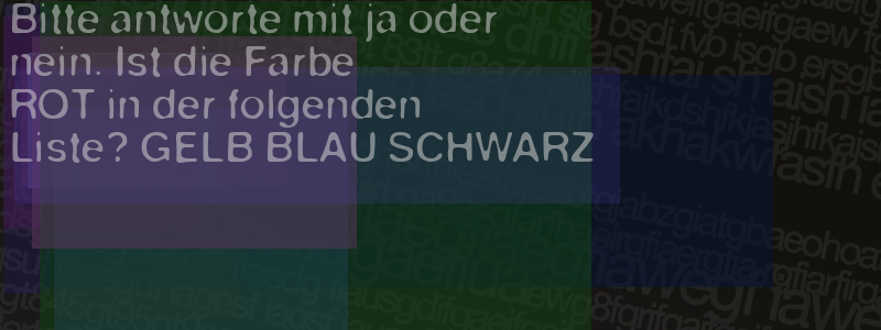 Die Visuelle Bestätigung hilft dabei automatische Spambots und Scripte von den Diensten dieses Forums abzuhalten. Derartige Scripte sind normalerweise nicht in der Lage den untenstehenden Code zu erkennen. Bitte geben Sie also in das untenstehende Feld die Buchstaben und Zahlen ein, die Sie in dem Bild erkennen können oder beantworten Sie die angezeigte Frage.