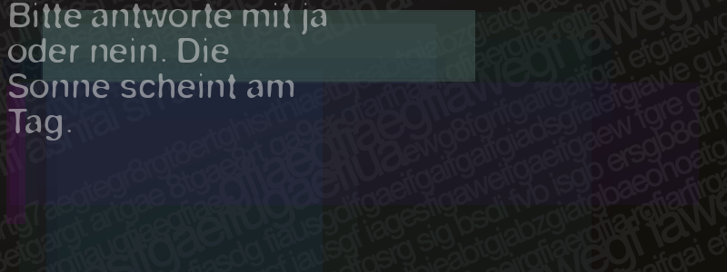 Die Visuelle Bestätigung hilft dabei automatische Spambots und Scripte von den Diensten dieses Forums abzuhalten. Derartige Scripte sind normalerweise nicht in der Lage den untenstehenden Code zu erkennen. Bitte geben Sie also in das untenstehende Feld die Buchstaben und Zahlen ein, die Sie in dem Bild erkennen können oder beantworten Sie die angezeigte Frage.