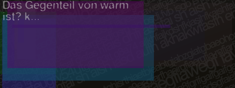 Die Visuelle Bestätigung hilft dabei automatische Spambots und Scripte von den Diensten dieses Forums abzuhalten. Derartige Scripte sind normalerweise nicht in der Lage den untenstehenden Code zu erkennen. Bitte geben Sie also in das untenstehende Feld die Buchstaben und Zahlen ein, die Sie in dem Bild erkennen können oder beantworten Sie die angezeigte Frage.
