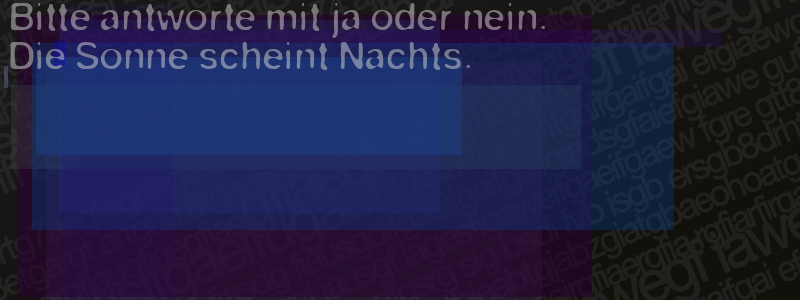Die Visuelle Bestätigung hilft dabei automatische Spambots und Scripte von den Diensten dieses Forums abzuhalten. Derartige Scripte sind normalerweise nicht in der Lage den untenstehenden Code zu erkennen. Bitte geben Sie also in das untenstehende Feld die Buchstaben und Zahlen ein, die Sie in dem Bild erkennen können oder beantworten Sie die angezeigte Frage.