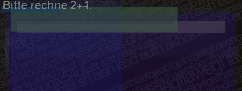 Die Visuelle Bestätigung hilft dabei automatische Spambots und Scripte von den Diensten dieses Forums abzuhalten. Derartige Scripte sind normalerweise nicht in der Lage den untenstehenden Code zu erkennen. Bitte geben Sie also in das untenstehende Feld die Buchstaben und Zahlen ein, die Sie in dem Bild erkennen können oder beantworten Sie die angezeigte Frage.