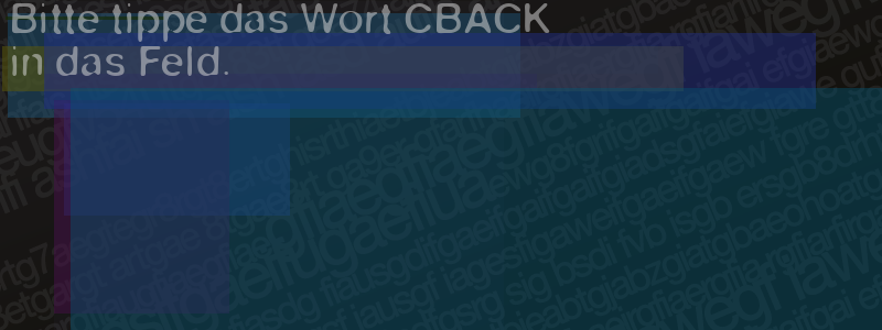 Die Visuelle Bestätigung hilft dabei automatische Spambots und Scripte von den Diensten dieses Forums abzuhalten. Derartige Scripte sind normalerweise nicht in der Lage den untenstehenden Code zu erkennen. Bitte geben Sie also in das untenstehende Feld die Buchstaben und Zahlen ein, die Sie in dem Bild erkennen können oder beantworten Sie die angezeigte Frage.
