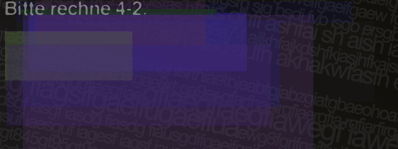 Die Visuelle Bestätigung hilft dabei automatische Spambots und Scripte von den Diensten dieses Forums abzuhalten. Derartige Scripte sind normalerweise nicht in der Lage den untenstehenden Code zu erkennen. Bitte geben Sie also in das untenstehende Feld die Buchstaben und Zahlen ein, die Sie in dem Bild erkennen können oder beantworten Sie die angezeigte Frage.