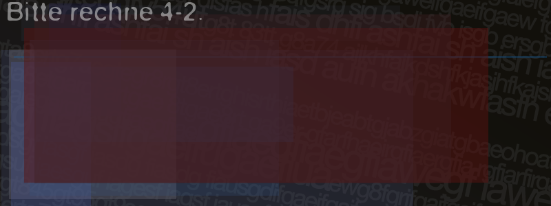 Die Visuelle Bestätigung hilft dabei automatische Spambots und Scripte von den Diensten dieses Forums abzuhalten. Derartige Scripte sind normalerweise nicht in der Lage den untenstehenden Code zu erkennen. Bitte geben Sie also in das untenstehende Feld die Buchstaben und Zahlen ein, die Sie in dem Bild erkennen können oder beantworten Sie die angezeigte Frage.