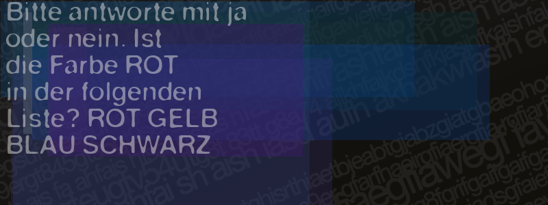 Die Visuelle Bestätigung hilft dabei automatische Spambots und Scripte von den Diensten dieses Forums abzuhalten. Derartige Scripte sind normalerweise nicht in der Lage den untenstehenden Code zu erkennen. Bitte geben Sie also in das untenstehende Feld die Buchstaben und Zahlen ein, die Sie in dem Bild erkennen können oder beantworten Sie die angezeigte Frage.