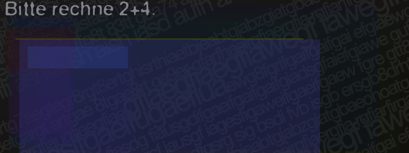 Die Visuelle Bestätigung hilft dabei automatische Spambots und Scripte von den Diensten dieses Forums abzuhalten. Derartige Scripte sind normalerweise nicht in der Lage den untenstehenden Code zu erkennen. Bitte geben Sie also in das untenstehende Feld die Buchstaben und Zahlen ein, die Sie in dem Bild erkennen können oder beantworten Sie die angezeigte Frage.