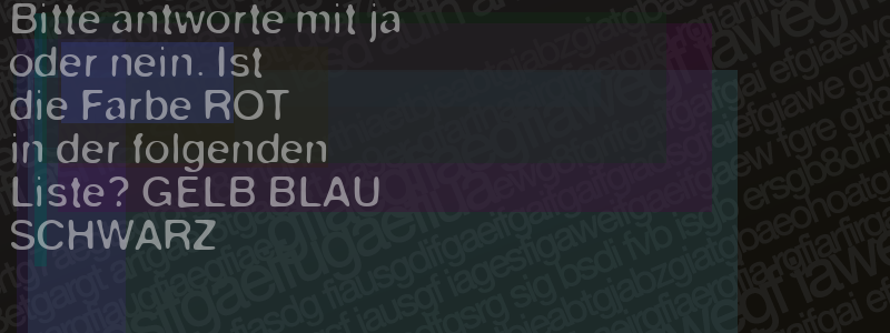 Die Visuelle Bestätigung hilft dabei automatische Spambots und Scripte von den Diensten dieses Forums abzuhalten. Derartige Scripte sind normalerweise nicht in der Lage den untenstehenden Code zu erkennen. Bitte geben Sie also in das untenstehende Feld die Buchstaben und Zahlen ein, die Sie in dem Bild erkennen können oder beantworten Sie die angezeigte Frage.
