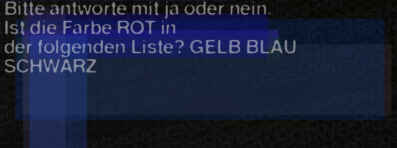 Die Visuelle Bestätigung hilft dabei automatische Spambots und Scripte von den Diensten dieses Forums abzuhalten. Derartige Scripte sind normalerweise nicht in der Lage den untenstehenden Code zu erkennen. Bitte geben Sie also in das untenstehende Feld die Buchstaben und Zahlen ein, die Sie in dem Bild erkennen können oder beantworten Sie die angezeigte Frage.