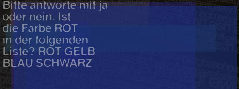 Die Visuelle Bestätigung hilft dabei automatische Spambots und Scripte von den Diensten dieses Forums abzuhalten. Derartige Scripte sind normalerweise nicht in der Lage den untenstehenden Code zu erkennen. Bitte geben Sie also in das untenstehende Feld die Buchstaben und Zahlen ein, die Sie in dem Bild erkennen können oder beantworten Sie die angezeigte Frage.