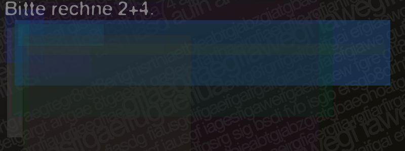 Die Visuelle Bestätigung hilft dabei automatische Spambots und Scripte von den Diensten dieses Forums abzuhalten. Derartige Scripte sind normalerweise nicht in der Lage den untenstehenden Code zu erkennen. Bitte geben Sie also in das untenstehende Feld die Buchstaben und Zahlen ein, die Sie in dem Bild erkennen können oder beantworten Sie die angezeigte Frage.