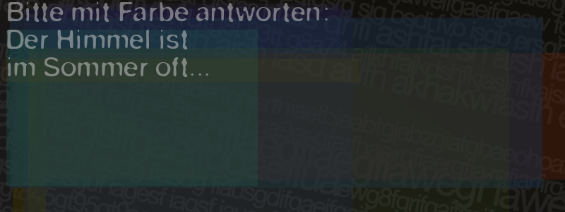 Die Visuelle Bestätigung hilft dabei automatische Spambots und Scripte von den Diensten dieses Forums abzuhalten. Derartige Scripte sind normalerweise nicht in der Lage den untenstehenden Code zu erkennen. Bitte geben Sie also in das untenstehende Feld die Buchstaben und Zahlen ein, die Sie in dem Bild erkennen können oder beantworten Sie die angezeigte Frage.