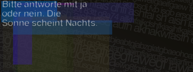 Die Visuelle Bestätigung hilft dabei automatische Spambots und Scripte von den Diensten dieses Forums abzuhalten. Derartige Scripte sind normalerweise nicht in der Lage den untenstehenden Code zu erkennen. Bitte geben Sie also in das untenstehende Feld die Buchstaben und Zahlen ein, die Sie in dem Bild erkennen können oder beantworten Sie die angezeigte Frage.