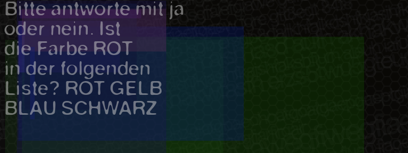Die Visuelle Bestätigung hilft dabei automatische Spambots und Scripte von den Diensten dieses Forums abzuhalten. Derartige Scripte sind normalerweise nicht in der Lage den untenstehenden Code zu erkennen. Bitte geben Sie also in das untenstehende Feld die Buchstaben und Zahlen ein, die Sie in dem Bild erkennen können oder beantworten Sie die angezeigte Frage.