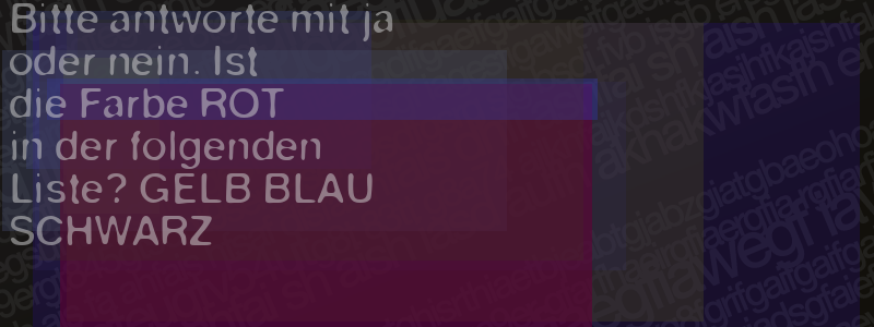 Die Visuelle Bestätigung hilft dabei automatische Spambots und Scripte von den Diensten dieses Forums abzuhalten. Derartige Scripte sind normalerweise nicht in der Lage den untenstehenden Code zu erkennen. Bitte geben Sie also in das untenstehende Feld die Buchstaben und Zahlen ein, die Sie in dem Bild erkennen können oder beantworten Sie die angezeigte Frage.