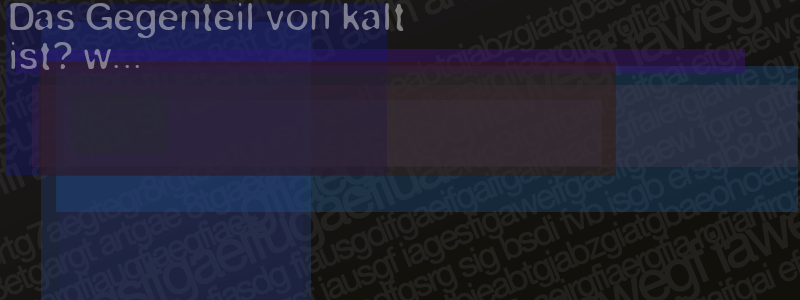 Die Visuelle Bestätigung hilft dabei automatische Spambots und Scripte von den Diensten dieses Forums abzuhalten. Derartige Scripte sind normalerweise nicht in der Lage den untenstehenden Code zu erkennen. Bitte geben Sie also in das untenstehende Feld die Buchstaben und Zahlen ein, die Sie in dem Bild erkennen können oder beantworten Sie die angezeigte Frage.