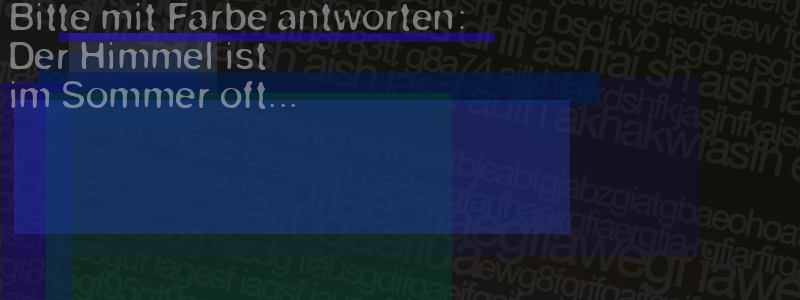 Die Visuelle Bestätigung hilft dabei automatische Spambots und Scripte von den Diensten dieses Forums abzuhalten. Derartige Scripte sind normalerweise nicht in der Lage den untenstehenden Code zu erkennen. Bitte geben Sie also in das untenstehende Feld die Buchstaben und Zahlen ein, die Sie in dem Bild erkennen können oder beantworten Sie die angezeigte Frage.