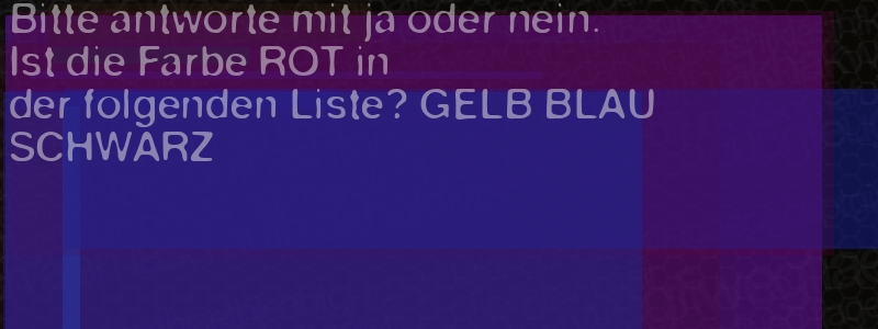 Die Visuelle Bestätigung hilft dabei automatische Spambots und Scripte von den Diensten dieses Forums abzuhalten. Derartige Scripte sind normalerweise nicht in der Lage den untenstehenden Code zu erkennen. Bitte geben Sie also in das untenstehende Feld die Buchstaben und Zahlen ein, die Sie in dem Bild erkennen können oder beantworten Sie die angezeigte Frage.