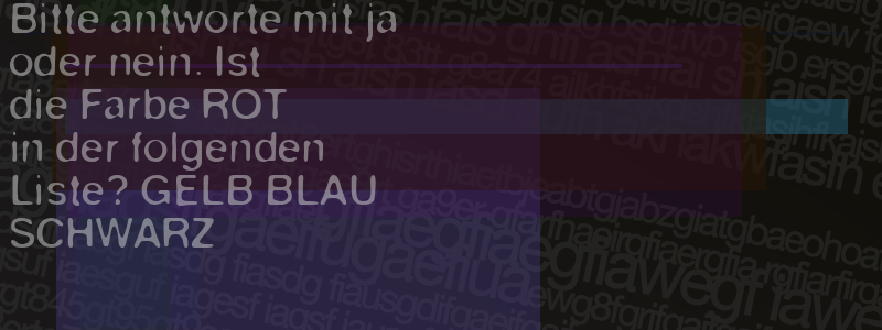 Die Visuelle Bestätigung hilft dabei automatische Spambots und Scripte von den Diensten dieses Forums abzuhalten. Derartige Scripte sind normalerweise nicht in der Lage den untenstehenden Code zu erkennen. Bitte geben Sie also in das untenstehende Feld die Buchstaben und Zahlen ein, die Sie in dem Bild erkennen können oder beantworten Sie die angezeigte Frage.