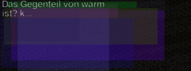 Die Visuelle Bestätigung hilft dabei automatische Spambots und Scripte von den Diensten dieses Forums abzuhalten. Derartige Scripte sind normalerweise nicht in der Lage den untenstehenden Code zu erkennen. Bitte geben Sie also in das untenstehende Feld die Buchstaben und Zahlen ein, die Sie in dem Bild erkennen können oder beantworten Sie die angezeigte Frage.