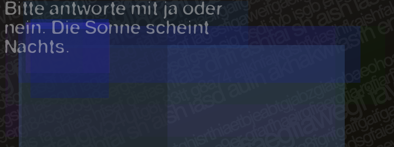 Die Visuelle Bestätigung hilft dabei automatische Spambots und Scripte von den Diensten dieses Forums abzuhalten. Derartige Scripte sind normalerweise nicht in der Lage den untenstehenden Code zu erkennen. Bitte geben Sie also in das untenstehende Feld die Buchstaben und Zahlen ein, die Sie in dem Bild erkennen können oder beantworten Sie die angezeigte Frage.