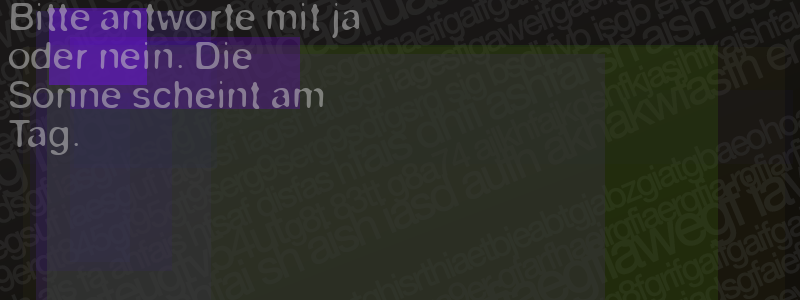 Die Visuelle Bestätigung hilft dabei automatische Spambots und Scripte von den Diensten dieses Forums abzuhalten. Derartige Scripte sind normalerweise nicht in der Lage den untenstehenden Code zu erkennen. Bitte geben Sie also in das untenstehende Feld die Buchstaben und Zahlen ein, die Sie in dem Bild erkennen können oder beantworten Sie die angezeigte Frage.