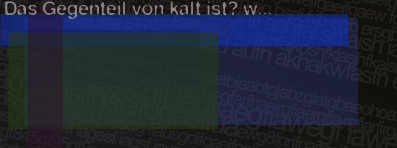 Die Visuelle Bestätigung hilft dabei automatische Spambots und Scripte von den Diensten dieses Forums abzuhalten. Derartige Scripte sind normalerweise nicht in der Lage den untenstehenden Code zu erkennen. Bitte geben Sie also in das untenstehende Feld die Buchstaben und Zahlen ein, die Sie in dem Bild erkennen können oder beantworten Sie die angezeigte Frage.