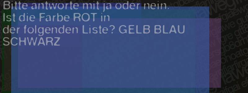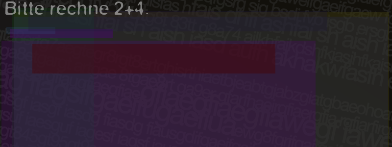 Die Visuelle Bestätigung hilft dabei automatische Spambots und Scripte von den Diensten dieses Forums abzuhalten. Derartige Scripte sind normalerweise nicht in der Lage den untenstehenden Code zu erkennen. Bitte geben Sie also in das untenstehende Feld die Buchstaben und Zahlen ein, die Sie in dem Bild erkennen können oder beantworten Sie die angezeigte Frage.