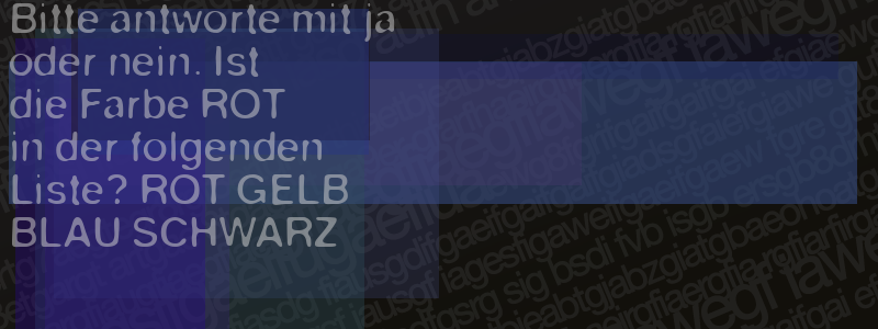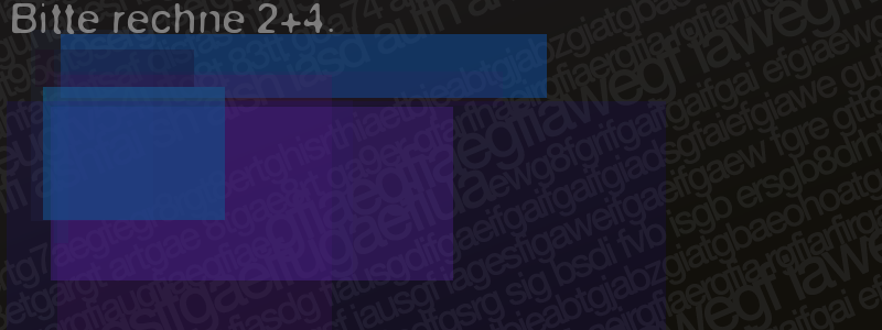 Die Visuelle Bestätigung hilft dabei automatische Spambots und Scripte von den Diensten dieses Forums abzuhalten. Derartige Scripte sind normalerweise nicht in der Lage den untenstehenden Code zu erkennen. Bitte geben Sie also in das untenstehende Feld die Buchstaben und Zahlen ein, die Sie in dem Bild erkennen können oder beantworten Sie die angezeigte Frage.