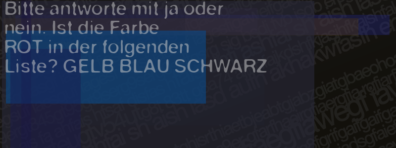 Die Visuelle Bestätigung hilft dabei automatische Spambots und Scripte von den Diensten dieses Forums abzuhalten. Derartige Scripte sind normalerweise nicht in der Lage den untenstehenden Code zu erkennen. Bitte geben Sie also in das untenstehende Feld die Buchstaben und Zahlen ein, die Sie in dem Bild erkennen können oder beantworten Sie die angezeigte Frage.