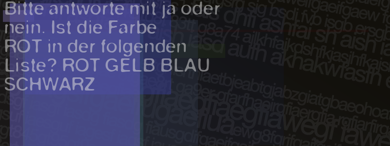 Die Visuelle Bestätigung hilft dabei automatische Spambots und Scripte von den Diensten dieses Forums abzuhalten. Derartige Scripte sind normalerweise nicht in der Lage den untenstehenden Code zu erkennen. Bitte geben Sie also in das untenstehende Feld die Buchstaben und Zahlen ein, die Sie in dem Bild erkennen können oder beantworten Sie die angezeigte Frage.