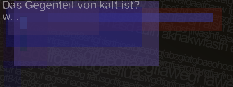 Die Visuelle Bestätigung hilft dabei automatische Spambots und Scripte von den Diensten dieses Forums abzuhalten. Derartige Scripte sind normalerweise nicht in der Lage den untenstehenden Code zu erkennen. Bitte geben Sie also in das untenstehende Feld die Buchstaben und Zahlen ein, die Sie in dem Bild erkennen können oder beantworten Sie die angezeigte Frage.