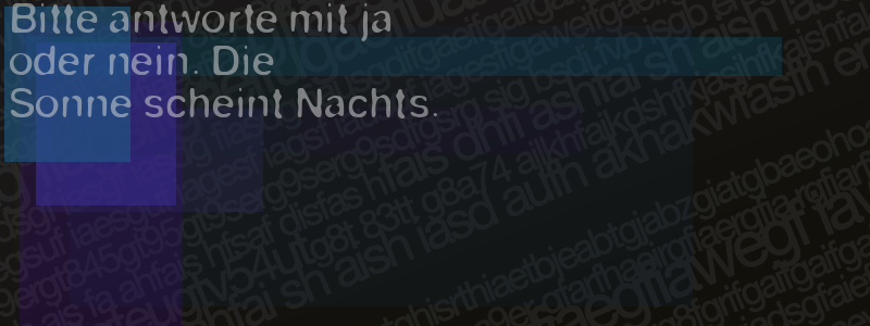 Die Visuelle Bestätigung hilft dabei automatische Spambots und Scripte von den Diensten dieses Forums abzuhalten. Derartige Scripte sind normalerweise nicht in der Lage den untenstehenden Code zu erkennen. Bitte geben Sie also in das untenstehende Feld die Buchstaben und Zahlen ein, die Sie in dem Bild erkennen können oder beantworten Sie die angezeigte Frage.