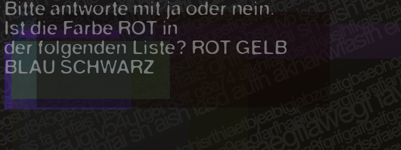 Die Visuelle Bestätigung hilft dabei automatische Spambots und Scripte von den Diensten dieses Forums abzuhalten. Derartige Scripte sind normalerweise nicht in der Lage den untenstehenden Code zu erkennen. Bitte geben Sie also in das untenstehende Feld die Buchstaben und Zahlen ein, die Sie in dem Bild erkennen können oder beantworten Sie die angezeigte Frage.