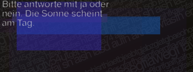 Die Visuelle Bestätigung hilft dabei automatische Spambots und Scripte von den Diensten dieses Forums abzuhalten. Derartige Scripte sind normalerweise nicht in der Lage den untenstehenden Code zu erkennen. Bitte geben Sie also in das untenstehende Feld die Buchstaben und Zahlen ein, die Sie in dem Bild erkennen können oder beantworten Sie die angezeigte Frage.