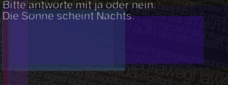 Die Visuelle Bestätigung hilft dabei automatische Spambots und Scripte von den Diensten dieses Forums abzuhalten. Derartige Scripte sind normalerweise nicht in der Lage den untenstehenden Code zu erkennen. Bitte geben Sie also in das untenstehende Feld die Buchstaben und Zahlen ein, die Sie in dem Bild erkennen können oder beantworten Sie die angezeigte Frage.