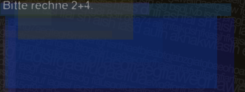 Die Visuelle Bestätigung hilft dabei automatische Spambots und Scripte von den Diensten dieses Forums abzuhalten. Derartige Scripte sind normalerweise nicht in der Lage den untenstehenden Code zu erkennen. Bitte geben Sie also in das untenstehende Feld die Buchstaben und Zahlen ein, die Sie in dem Bild erkennen können oder beantworten Sie die angezeigte Frage.
