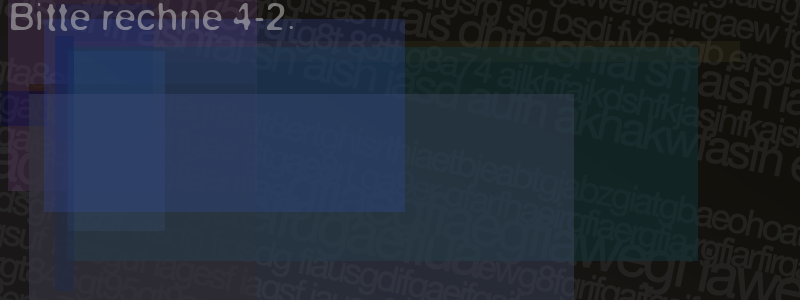Die Visuelle Bestätigung hilft dabei automatische Spambots und Scripte von den Diensten dieses Forums abzuhalten. Derartige Scripte sind normalerweise nicht in der Lage den untenstehenden Code zu erkennen. Bitte geben Sie also in das untenstehende Feld die Buchstaben und Zahlen ein, die Sie in dem Bild erkennen können oder beantworten Sie die angezeigte Frage.