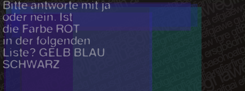 Die Visuelle Bestätigung hilft dabei automatische Spambots und Scripte von den Diensten dieses Forums abzuhalten. Derartige Scripte sind normalerweise nicht in der Lage den untenstehenden Code zu erkennen. Bitte geben Sie also in das untenstehende Feld die Buchstaben und Zahlen ein, die Sie in dem Bild erkennen können oder beantworten Sie die angezeigte Frage.
