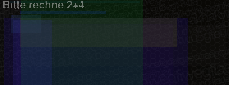 Die Visuelle Bestätigung hilft dabei automatische Spambots und Scripte von den Diensten dieses Forums abzuhalten. Derartige Scripte sind normalerweise nicht in der Lage den untenstehenden Code zu erkennen. Bitte geben Sie also in das untenstehende Feld die Buchstaben und Zahlen ein, die Sie in dem Bild erkennen können oder beantworten Sie die angezeigte Frage.