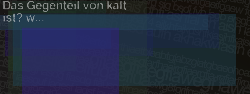 Die Visuelle Bestätigung hilft dabei automatische Spambots und Scripte von den Diensten dieses Forums abzuhalten. Derartige Scripte sind normalerweise nicht in der Lage den untenstehenden Code zu erkennen. Bitte geben Sie also in das untenstehende Feld die Buchstaben und Zahlen ein, die Sie in dem Bild erkennen können oder beantworten Sie die angezeigte Frage.